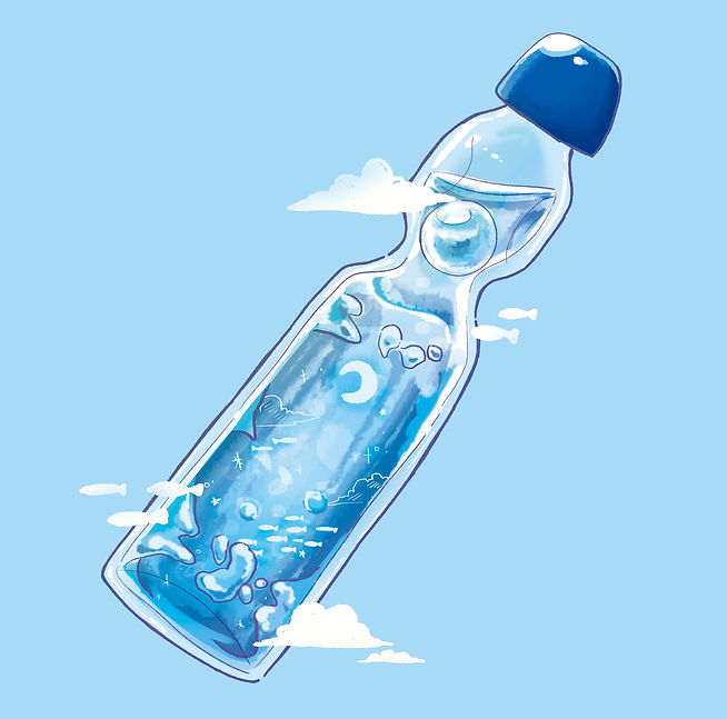 暑い夏もそろそろ終わりに近づいていますね。毎年、今年こそは夏祭りに行ってみようかなと考えてはいるのですが、あまり人混みが得意でないのもあり、いつも参加を諦めてしまいます。小さい頃は良くお祭りの屋台で冷やされたラムネを飲んでいましたが、最近は全然飲んでいないなと思い、今月はラムネを描きました。